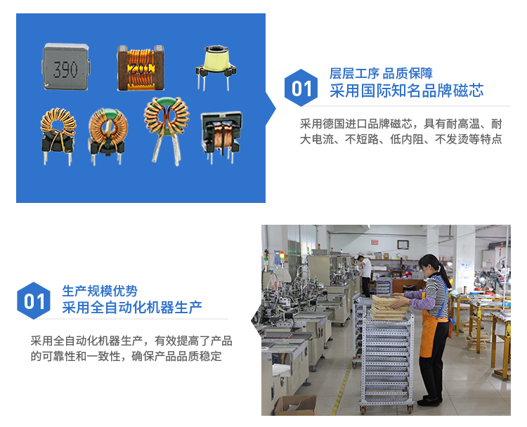 3. 可以串聯(lián)或并聯(lián)連接,提供較寬的電感值和較大的額定電流值;